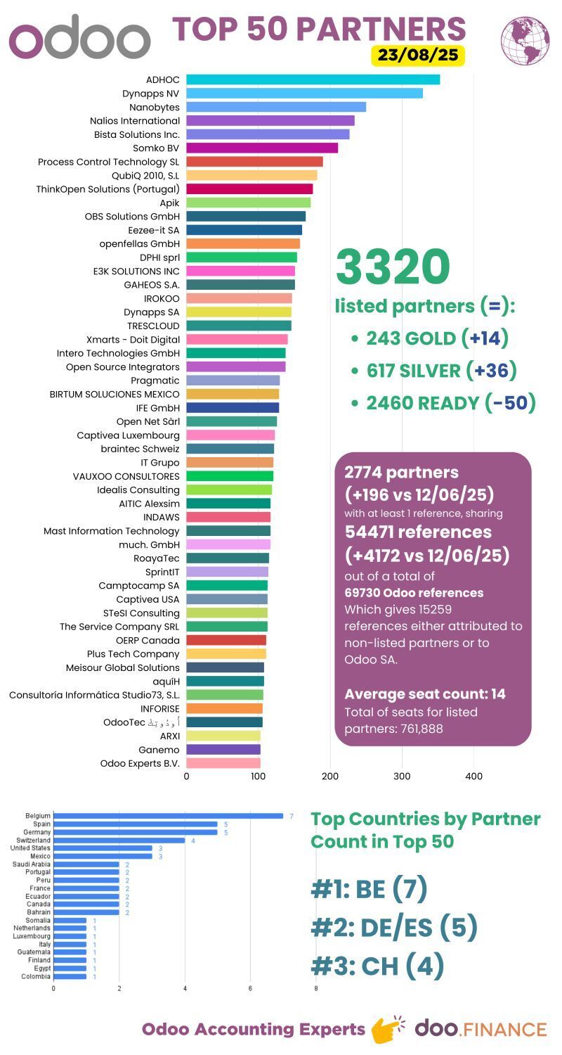 The new August 23rd leaderboard update confirms what many suspected: the Odoo partner network is consolidating, with clear winners pulling ahead.