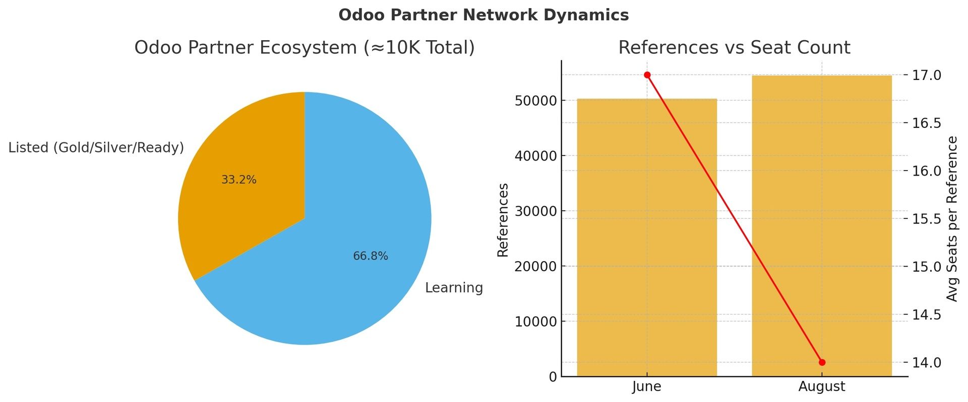 Odoo last reported ~10,000 partners overall — which means thousands remain stuck in “Learning” tier with no visibility, no references, and no graduation since June.